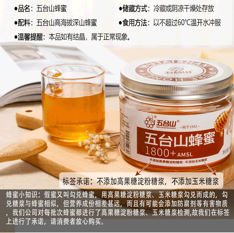 五臺山蜂蜜1800+AMSL蜜源430g/瓶