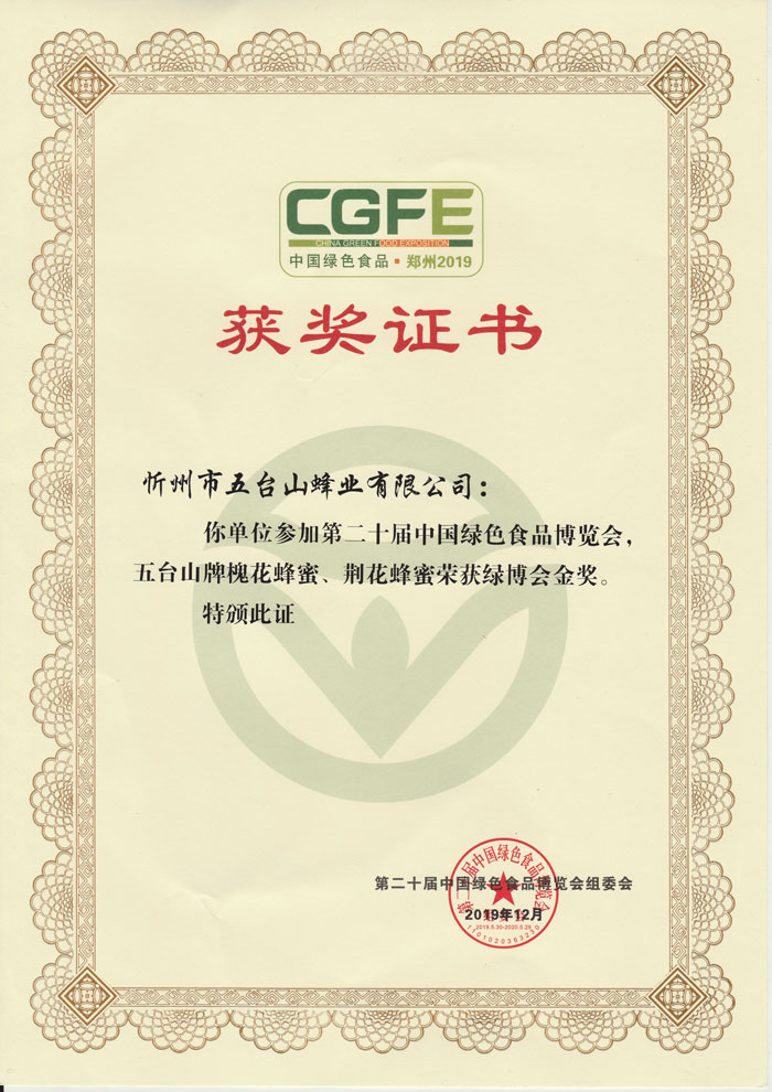 五臺(tái)山牌槐花蜂蜜喜獲中國(guó)綠博金獎(jiǎng)